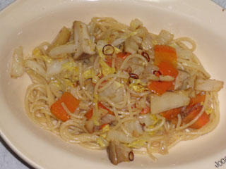 白菜とエリンギのペペロンチーノ