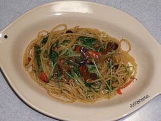水菜とアンチョビのペペロンチーノ