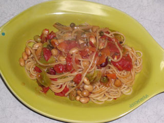 ミックスビーンズのトマトソースパスタ