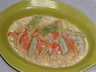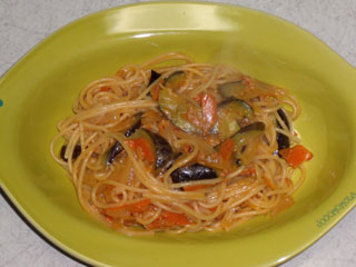 ナスとニンジンの味噌ミルクチーズソースパスタ