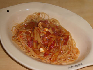 ジャガイモとクリームチーズのトマトソースパスタ