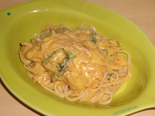 長ネギとオイルサーディンのミルクチーズソースパスタ