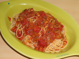 辛さの程度は赤唐辛子ひとつまみとタバスコを数回振り入れるくらいだったらそれほど強烈にはならない。猛烈に辛くないとアラビアータじゃない、という方は赤唐辛子とタバスコを増量されたし。