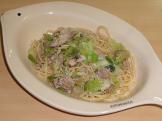キャベツと豚肉のネギ塩パスタ