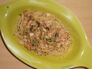 んまかった。見た目も以前の大根おろしを使ったパスタよりはお気に入り。茶色単色でまとめると割り切ったのが正解だったのかも。大根おろしをからめた味とからめないときの味が随分違うので、両方の味を楽しみたい場合は大根おろしを端の方に乗せてどうぞ。