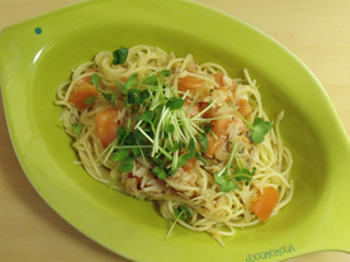 トマトとツナの冷製パスタ・カイワレ乗せ