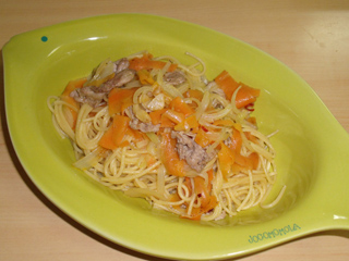 豚肉とニンジンの醤油風味ペペロンチーノ
