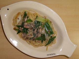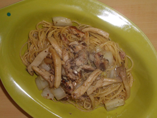 オイルサーディンとエリンギの醤油風味パスタ
