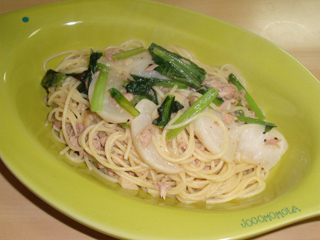 ツナと大根と小松菜のペペロンチーノ
