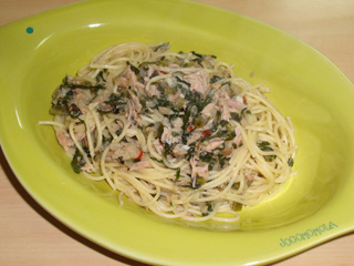 ツナと大根の葉のふりかけのペペロンチーノ