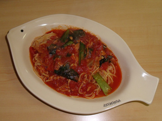 相方が小松菜を買ってきてくれ、小松菜を使ってパスタを作るリクエストを受けた。最初はクリームソースのパスタにしようかと思ったが、それだと前日とかぶるなぁと思いトマトソースに変更。実は写真のはパスタの茹で汁を多めに入れてしまい水っぽくなってしまっている。多分水分をあまり足さずにトマトソースを煮詰めて作ったほうが私好み。勿論トマトスープスパにするならそれもありだが。