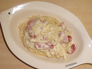 至ってシンプルなパスタ。でもんまかった。オリーブオイルがなくても、この要領なら立派なパスタ料理になる。油を切らしたときに便利。