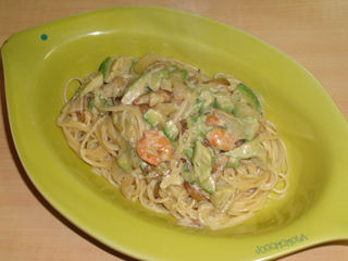 明治北海道十勝スマートチーズとエビとアボカドのパスタ