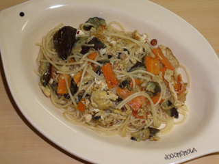 ナスとタマゴのペペロンチーノ