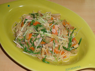 水菜とツナの七味マヨネーズソースパスタ