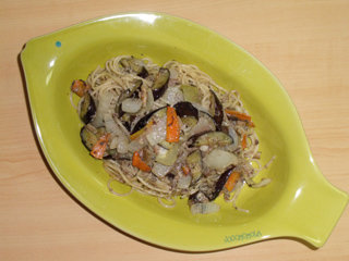 ナスとオイルサーディンのパスタ バジル風味