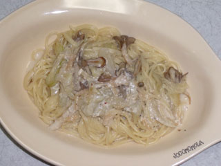 ナスと舞茸の貝柱ミルクソースパスタ