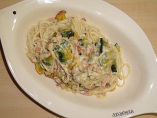 ベーコンとカボチャのクリームパスタ