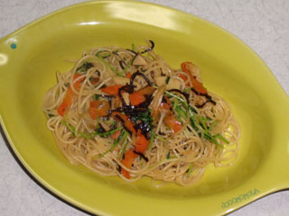 豆苗と塩昆布のアーリオオーリオ