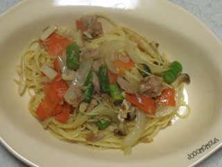 アスパラとツナのペペロンチーノ