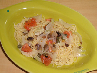 トマトとブラックオリーブの冷製パスタ