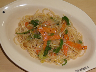 チーズと色々野菜のトマぽん風味スパゲッティ