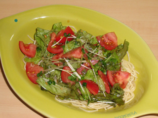 トマトサニーレタスかいわれの冷製パスタ