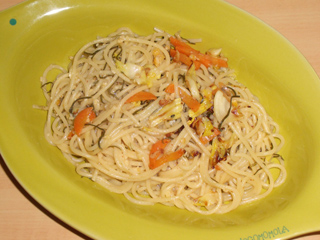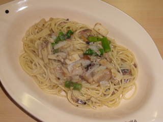 何だろう・・・にんにくの芽とエリンギでアーリオオーリオ作ったような。