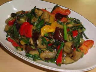 ナスとパプリカとにらの味噌炒め