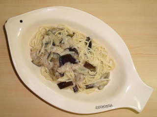 ナスとタマネギのチーズパスタ