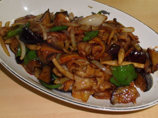 豚肉とナスしめじのオイスターソース炒め