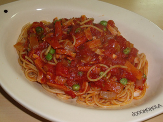 ベーコンのトマトソースパスタ