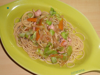 キャベツとイカの塩辛のパスタ