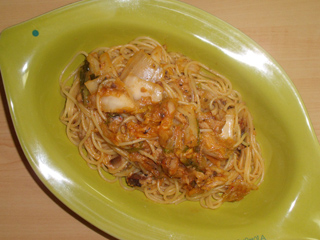 オイルサーディンチーズキムチの簡単パスタ