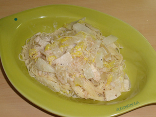 ・フライパンの火を止めてバターを投入し余熱で溶かし、マヨネーズ、コショウ、牛乳、明太子を入れて混ぜ、全体が馴染んだら皿に盛り付けて出来上がり