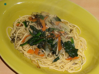 タマネギ、しいたけ、昆布、チーズと旨味いっぱいの食材で作ったパスタ。んまかった。