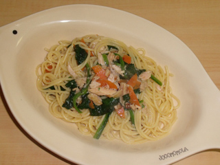 ほうれん草とツナのペペロンチーノ