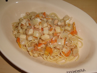 たけのこと大豆のマヨタバスコ風味パスタ
