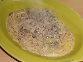 バーニャカウダはにんにくとアンチョビ、オリーブオイルを煮立ててつくるソース。今回のレシピはそのアレンジ、というか「もどき」。味の仕上がりには不満は無いが、牛乳が多すぎたのかどうなのか見た目が今一歩。そのあたりのバランスは改良の余地あり。