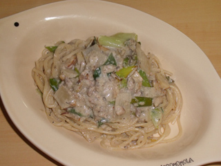 長ネギとオイルサーディンのミルクチーズソースパスタ
