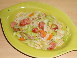 チョリソーとキャベツのアーリオオーリオ