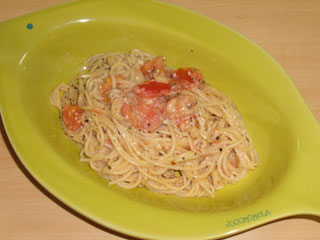 トマトとチーズのマヨバジルソースパスタ