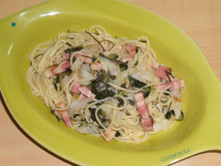 かぶの葉のふりかけは常備菜にもなるので、先日作り置きした。せっかくあるならということでパスタも一品作ってみた。自分はかぶの葉独特の味わいというか苦味は結構好きなのだが、苦味が丸くなる料理の仕方をしたほうが子供には受けるかも。といいつつどう料理すればいいかは知らなかったり。